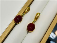 18K黄金彩宝镶天然阿卡牛血红珊瑚蛋面耳坠