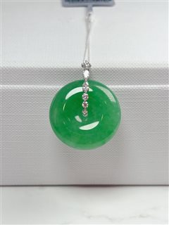 18K白金钻石镶满绿翡翠平安扣吊坠