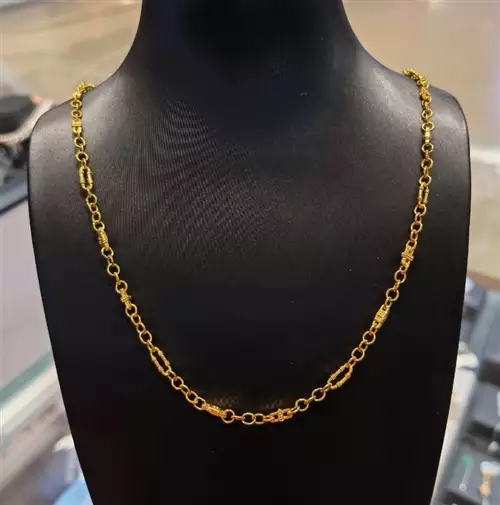 古法手工錾刻金(六)金钱连接链