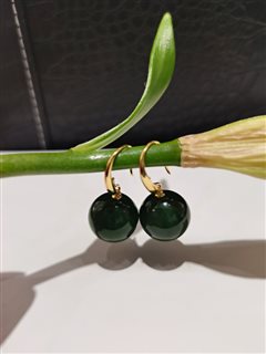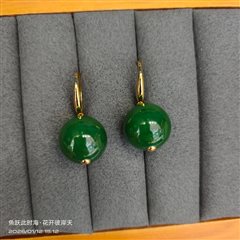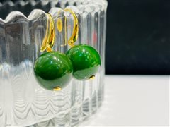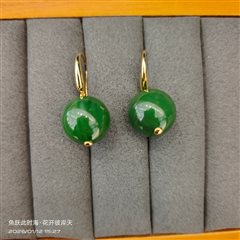 18K黄金镶天然碧玉圆珠耳坠(15mm)
