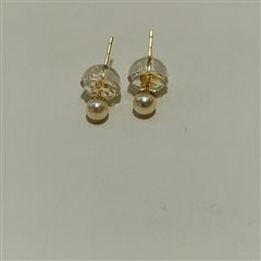 18K黄金镶天然海水羽皇金Akoya珍珠耳钉(3-3.5mm)配耳堵