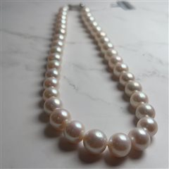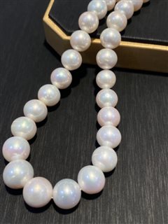 18K白金天然海水真多麻珍珠项链(9-10mm)