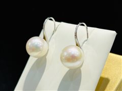 S925银镶天然淡水白珍珠高跟鞋耳钩(11-12mm)