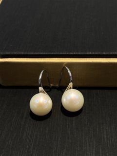 S925银镶天然淡水白珍珠高跟鞋耳钩(10-11mm)