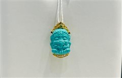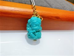 18K黄金镶高瓷喇叭山泡油松石象神吊坠