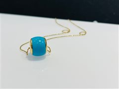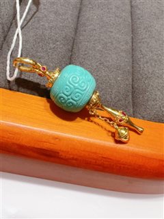 18K黄金镶高瓷喇叭山泡油松石回纹转经轮吊坠