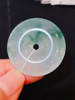 天然翡翠高冰飘绿平安扣(15.3*3.4mm)