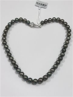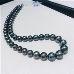天然海水大溪地黑珍珠项链(7.5-11mm)含银扣