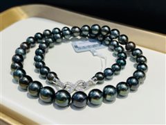 天然海水大溪地黑珍珠项链(8-10.5mm)含银扣