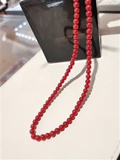 天然意大利沙丁牛血红珊瑚圆珠项链(4-4.5mm)109粒