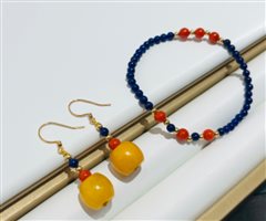 TBY14蜜蜡苹果珠配青金南红珊瑚18K金耳坠