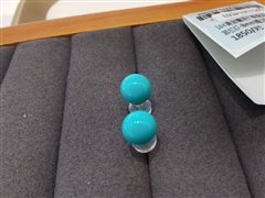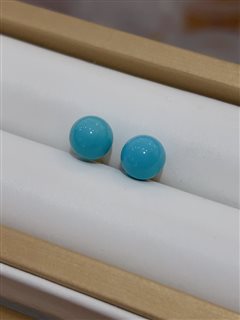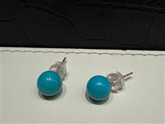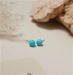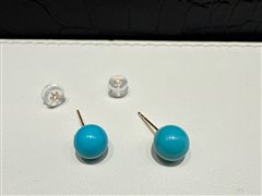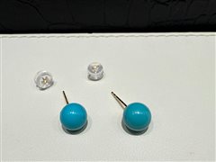 18K黄金镶原矿高瓷蓝松石圆珠耳钉(7-8mm)配18K金硅胶耳堵