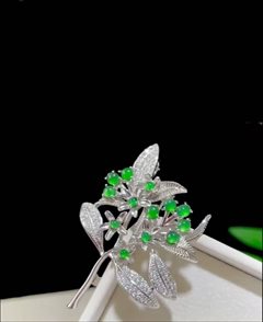 银镶满绿翡翠蛋面胸针吊坠两用款