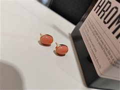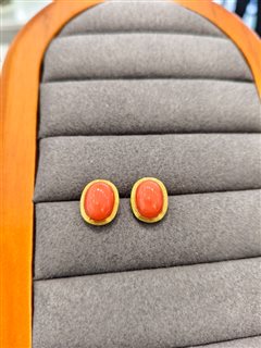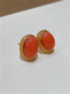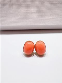 18K黄金镶天然深水孩儿面粉珊瑚蛋面耳钉