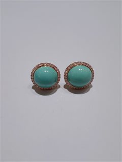 18K彩金钻石镶原矿金龙山料松石蛋面耳钉