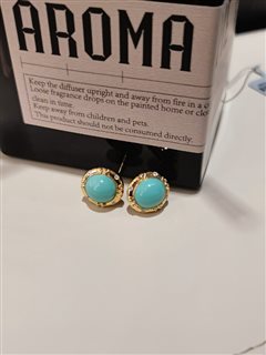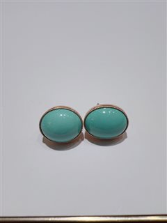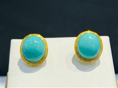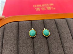 18K彩金镶原矿金龙山料松石蛋面耳钉