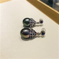 纯银镶嵌天然海水大溪地珍珠耳坠(10-11mm)