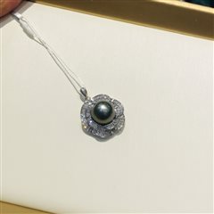 纯银镶嵌天然海水大溪地珍珠吊坠(11mm)