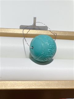 【福利专供】原矿喇叭山料松石雕刻回纹圆珠高级配珠(17.8mm)