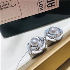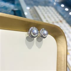 纯银镶嵌天然海水真多麻珍珠耳钉(7-8mm)