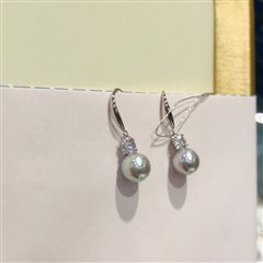 纯银镶嵌天然海水真多麻珍珠耳坠(8-9mm)