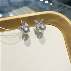 纯银镶嵌天然海水真多麻珍珠耳坠(8mm)