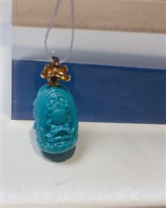 18K黄金镶原矿高瓷蓝喇叭山玉化料松石笑佛吊坠