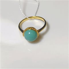 18K黄金钻石镶原矿丫角山料松石蛋面戒指