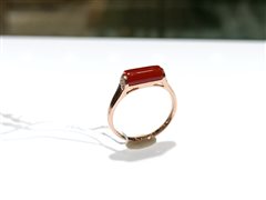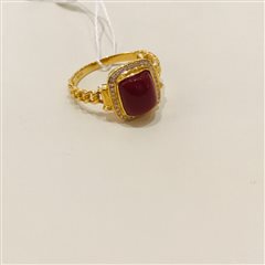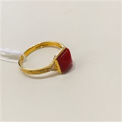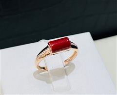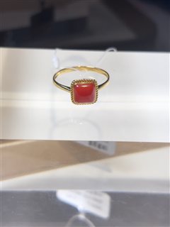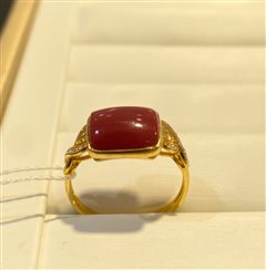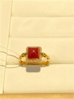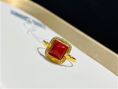 18K黄金镶天然阿卡牛血红珊瑚方面戒指