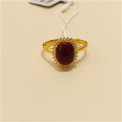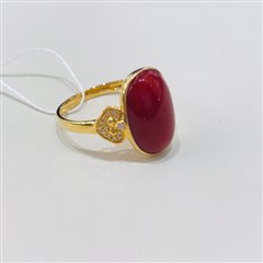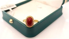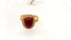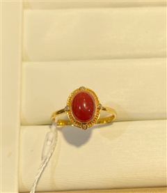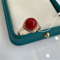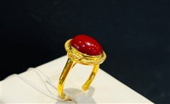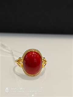 18K彩金彩宝镶天然阿卡牛血红珊瑚蛋面戒指