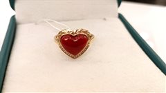 18K彩金钻石镶天然阿卡牛血红珊瑚桃心戒指