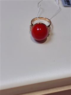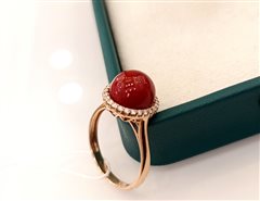 18K彩金钻石镶天然阿卡牛血红珊瑚蛋面戒指