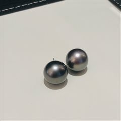 18K白金钻石镶天然海水大溪地铂金灰珍珠耳钉(11-12mm)配进口硅胶耳堵