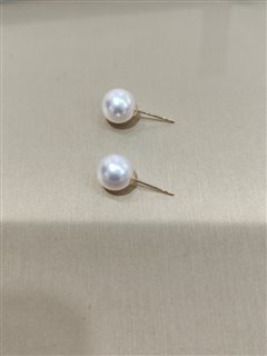 18K黄金镶天然海水Akoya珍珠耳钉(8-8.5mm)
