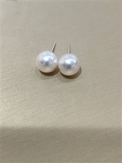 18K白金镶天然海水Akoya珍珠耳钉(8-8.5mm)