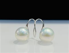 特价18K白金镶天然爱迪生白珍珠高跟鞋款耳钩(11-12mm)