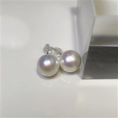 18K白金镶天然淡水白珍珠耳钉(9-10mm)
