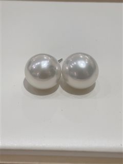 纯银镶天然爱迪生白珍珠耳钉(16mm)
