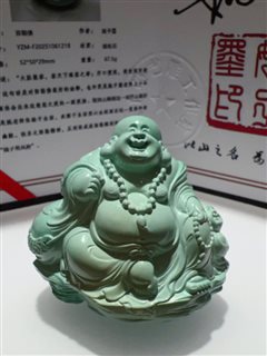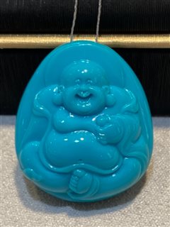 高瓷蓝云盖寺玉化料泡油松石笑佛吊坠