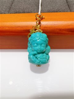 18K黄金镶高瓷蓝金龙山泡油松石绿度母宝宝佛吊坠