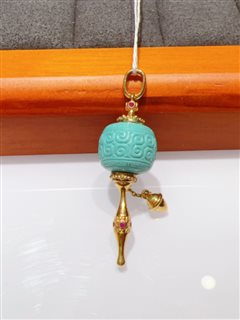 18K黄金镶高瓷喇叭山泡油松石回纹转经轮吊坠