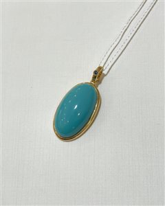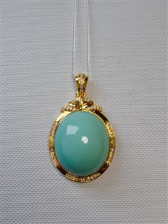 18K黄金钻石镶原矿高瓷蓝松石蛋面吊坠
