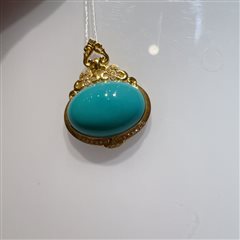 18K彩金彩宝镶原矿秦古料松石蛋面吊坠