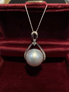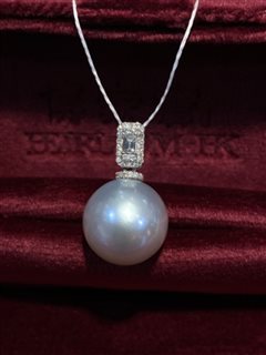 18K白金钻石镶天然海水澳白珍珠吊坠(12-13mm)
