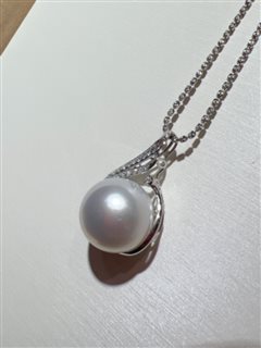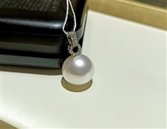 18K白金钻石镶天然海水澳白珍珠吊坠(12mm)