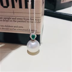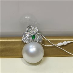 18K白金钻石祖母绿镶天然海水澳白珍珠吊坠(14.5mm)