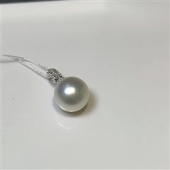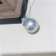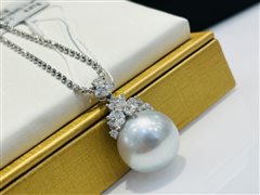 18K白金钻石镶天然海水澳白珍珠吊坠(12.7mm)