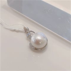 18K白金钻石镶天然爱迪生白珍珠吊坠(12-13mm)
