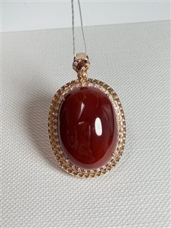 18K彩金钻石镶天然阿卡牛血红珊瑚蛋面吊坠
