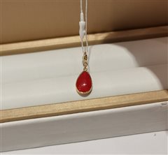 18K黄金镶天然阿卡红珊瑚水滴吊坠